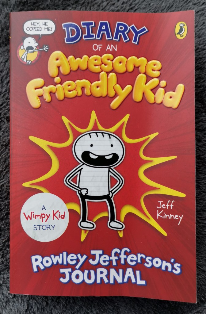 An Awesome Friendly Kid is Rowley Jefferson’s Journal. Rowley is the best friend of Gregory (The Wimpy Kid). In this book Rowley gets a diary to copy his friend but Greg makes him write a biography about him instead.